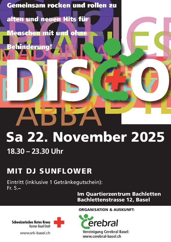 Ein Angebot der Vereinigung Cerebral Basel: Gemeinsam rocken und rollen zu alten und neuen Hits! Für Menschen mit und ohne Behinderungen.