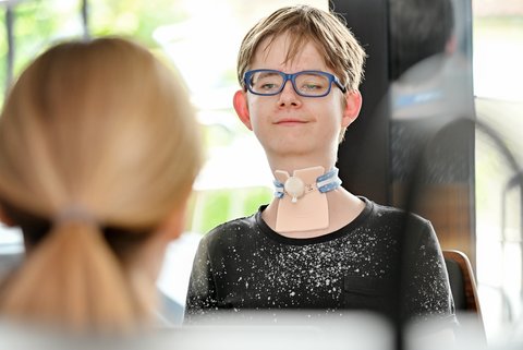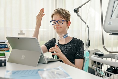 Was für viele Menschen selbstverständlich ist, erfordert von Clemens Florin einen täglichen Kraftakt: das Atmen. Eine seltene Muskelschwäche betrifft seinen gesamten Körper, besonders aber die Nackenmuskulatur. Damit ist alles eingeschränkt was mit der Atmung, dem Hals und dem Schlucken zusammenhängt. Im Alltag ist er auf medizinische Versorgung angewiesen. Ob sich der 15-Jährige davon einschränken lässt? Mitnichten.