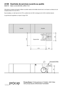Rechercher «» Reset Such-Filter Tous Fichiers 91. A126_guichet_de_la_prestation_08_2019.pdf A126 Guichets de services ouverts au public 08/2019 Selon norme SIA 500, chiffre 7.4.4 Côté clients, les plans de travail à utiliser en position assise et les tables doivent avoir une hauteur… /fileadmin/files/procap/Angebote/Beratung_Information/Bauen_und_Verkehr/Downloads/Merkblaetter_und_Checklisten/Oeffentlich_zugaengliche_Bauten/Gebaeudezugang_und_Eingangsbereich/Francais/A126_guichet_de_la_prestation_08_2019.pdf 92. A129_Elements_de_mobilier_urbain_12_2019.pdf A129 Eléments de mobilier urbain 12/2019 selon norme SIA 500, chiffre 3.4.4 Obstacles Principe Les éléments de mobilier urbain sont à disposer en dehors des espaces de cheminement piétonnier. … /fileadmin/files/procap/Angebote/Beratung_Information/Bauen_und_Verkehr/Downloads/Merkblaetter_und_Checklisten/Oeffentlich_zugaengliche_Bauten/Gebaeudezugang_und_Eingangsbereich/Francais/A129_Elements_de_mobilier_urbain_12_2019.pdf 93. A130_Informations_visuelles_12_2019.pdf A130 Informations visuelles 12/2019 selon norme SIA 500, chiffre 6.2.1 Les inscriptions et les pictogrammes destinés à informer ou à guider les personnes doivent être placés dans leur champ visuel… /fileadmin/files/procap/Angebote/Beratung_Information/Bauen_und_Verkehr/Downloads/Merkblaetter_und_Checklisten/Oeffentlich_zugaengliche_Bauten/Gebaeudezugang_und_Eingangsbereich/Francais/A130_Informations_visuelles_12_2019.pdf 94. F107_Installation_d_ecoute_01_2020.pdf 01/20 Fiche technique 107 Installations d’écoute selon chiffre 7.8 de la norme SIA 500 Seule la teneur de la norme SIA 500 et celle de la norme SN EN 60118-4 qui lui est associée font foi (à… /fileadmin/files/procap/Angebote/Beratung_Information/Bauen_und_Verkehr/Downloads/Merkblaetter_und_Checklisten/Oeffentlich_zugaengliche_Bauten/Hoeranlagen/Francais/F107_Installation_d_ecoute_01_2020.pdf 95. A101_WC_reservoir_en_applique_2019_08.pdf A101 WC adapté au fauteuil roulant, réservoir de chasse an applique 08/2019 Constructions ouvertes au public selon norme SIA annexe E.1 Légende F G H l J K L X H I Y D G + 0.70 - + 0.75 Z … /fileadmin/files/procap/Angebote/Beratung_Information/Bauen_und_Verkehr/Downloads/Merkblaetter_und_Checklisten/Oeffentlich_zugaengliche_Bauten/Rollstuhlgaengige_Toiletten/Francais/A101_WC_reservoir_en_applique_2019_08.pdf 96. A102_WC_reservoir_encastre_et_doublage_2017_09.pdf A102 WC adapté au fauteuil roulant, réservoir de chasse encastré et doublage 09/2017 Constructions ouvertes au public selon norme SIA 500 annexe E.1 Légende G H l J K L Précisions Procap W… /fileadmin/files/procap/Angebote/Beratung_Information/Bauen_und_Verkehr/Downloads/Merkblaetter_und_Checklisten/Oeffentlich_zugaengliche_Bauten/Rollstuhlgaengige_Toiletten/Francais/A102_WC_reservoir_encastre_et_doublage_2017_09.pdf 97. A103_WC_reservoir_encastre_et_dossier_2012_08.pdf A103 WC adapté au fauteuil roulant avec réservoir de chasse encastré et 08/2012 dossier Constructions ouvertes au public selon norme SIA 500 annexe E.1 Légende F G H l J K L Précisions Procap X… /fileadmin/files/procap/Angebote/Beratung_Information/Bauen_und_Verkehr/Downloads/Merkblaetter_und_Checklisten/Oeffentlich_zugaengliche_Bauten/Rollstuhlgaengige_Toiletten/Francais/A103_WC_reservoir_encastre_et_dossier_2012_08.pdf 98. A104_WC_porte_ouvrant_a_interieur_2019_08.pdf A104 WC adapté au fauteuil roulant avec porte s'ouvrant à l'intérieur 08/2019 pour constructions ouvertes au public selon norme SIA 500, annexe E.1 Lorsque la porte s'ouvre à l'intérieur, la… /fileadmin/files/procap/Angebote/Beratung_Information/Bauen_und_Verkehr/Downloads/Merkblaetter_und_Checklisten/Oeffentlich_zugaengliche_Bauten/Rollstuhlgaengige_Toiletten/Francais/A104_WC_porte_ouvrant_a_interieur_2019_08.pdf 99. A105_WC_avec_urinoir_2019_08.pdf A105 WC adapté au fauteuil roulant avec urinoir 08/2019 pour constructions ouvertes au public selon norme SIA 500, annexe E.1 Légende H l J K L Précisions Procap T Urinoir X Distributeur de savon… /fileadmin/files/procap/Angebote/Beratung_Information/Bauen_und_Verkehr/Downloads/Merkblaetter_und_Checklisten/Oeffentlich_zugaengliche_Bauten/Rollstuhlgaengige_Toiletten/Francais/A105_WC_avec_urinoir_2019_08.pdf 100. A123_WC_pour_personnes_a_mobilite_reduite_2019_08.pdf A123 WC pour personnes à mobilité réduite 08/2019 Selon documentation D0254 Installations de sport sans obstacles, chiffre 6.3.2 Parmi les WC standard, au moins l'un devrait si possible remplir les… /fileadmin/files/procap/Angebote/Beratung_Information/Bauen_und_Verkehr/Downloads/Merkblaetter_und_Checklisten/Oeffentlich_zugaengliche_Bauten/Rollstuhlgaengige_Toiletten/Francais/A123_WC_pour_personnes_a_mobilite_reduite_2019_08.pdf <567891011121314>