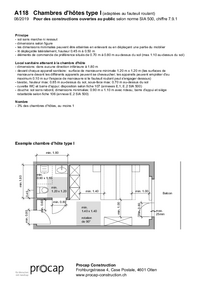 A118 Chambres d'hôtes type I (adaptées au fauteuil roulant) 08/2019 Pour des constructions ouvertes au public selon norme SIA 500, chiffre 7.9.1 Principe - sol sans marche ni ressaut - dimensions…   /fileadmin/files/procap/Angebote/Beratung_Information/Bauen_und_Verkehr/Downloads/Merkblaetter_und_Checklisten/Oeffentlich_zugaengliche_Bauten/Gaestezimmer_und_Anprobierkabinen/Francais/A118_chambre_dhotes_type_I_08_2019.pdf