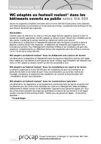 01/20 Fiche technique 105 WC adaptés au fauteuil roulant* dans les bâtiments ouverts au public selon SIA 500 Seules les exigences complètes formulées dans la norme SIA 500 Constructions sans…   /fileadmin/files/procap/Angebote/Beratung_Information/Bauen_und_Verkehr/Downloads/Merkblaetter_und_Checklisten/Oeffentlich_zugaengliche_Bauten/Rollstuhlgaengige_Toiletten/Francais/F105_WC_batiments_ouvertes_au_public_2020_01.pdf