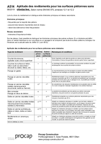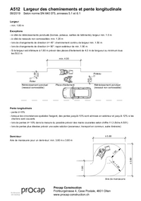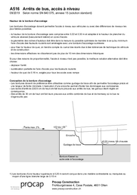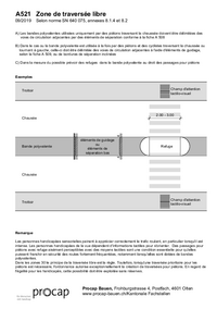 Rechercher «» Reset Such-Filter Tous Fichiers 181. A507_Escaliers_09_2019.pdf A507 Escaliers 09/2019 Selon norme SN 640 075, annexe 6.3 - si possible: volées droites, mains courantes et bords latéraux parallèles à la ligne de pente, pas de marches isolées - mains courantes… /fileadmin/files/procap/Angebote/Beratung_Information/Bauen_und_Verkehr/Downloads/Merkblaetter_und_Checklisten/Fussgaengerverkehr/Francais/A507_Escaliers_09_2019.pdf 182. A508_Elements_seperateurs_09_2019.pdf A508 Eléments de séparation Selon norme SN 640 075, annexe 7.1 09/2019 Les éléments de séparations suivants sont usuels: A) Bordures hautes - ressaut vertical ≥= 60 mm - bordure inclinée, hauteur:… /fileadmin/files/procap/Angebote/Beratung_Information/Bauen_und_Verkehr/Downloads/Merkblaetter_und_Checklisten/Fussgaengerverkehr/Francais/A508_Elements_seperateurs_09_2019.pdf 183. A509_Elements_de_guidage_09_2019.pdf A509 Eléments de guidage 09/2019 Selon norme SN 640 075, annexe 7.2 Les éléments de guidage doivent se distinguer du revêtement de sol par un contraste de luminosité de K ≥= 0.3 Les éléments de… /fileadmin/files/procap/Angebote/Beratung_Information/Bauen_und_Verkehr/Downloads/Merkblaetter_und_Checklisten/Fussgaengerverkehr/Francais/A509_Elements_de_guidage_09_2019.pdf 184. A512_Largeur_de_la_surface_pietonne_09_2019.pdf A512 Largeur des cheminements et pente longitudinale Selon norme SN 640 075, annexes 5.1 et 6.1 09/2019 Largeur - min. 1.80 m Exceptions - à côté de rétrécissements ponctuels (bornes, poteaux,… /fileadmin/files/procap/Angebote/Beratung_Information/Bauen_und_Verkehr/Downloads/Merkblaetter_und_Checklisten/Fussgaengerverkehr/Francais/A512_Largeur_de_la_surface_pietonne_09_2019.pdf 185. A514_Aptitude_des_revetements_pour_les_surfaces_pietonnes_09_2019.pdf A514 Aptitude des revêtements pour les surfaces piétonnes sans 09/2019 obstacles, Selon norme SN 640 075, annexes 12.1 et 12.2 Lors du choix du revêtement on distingue entre itinéraires principaux… /fileadmin/files/procap/Angebote/Beratung_Information/Bauen_und_Verkehr/Downloads/Merkblaetter_und_Checklisten/Fussgaengerverkehr/Francais/A514_Aptitude_des_revetements_pour_les_surfaces_pietonnes_09_2019.pdf 186. A515_Contraste_de_luminosite_09_2019.pdf A515 Contraste de luminosité 09/2019 Selon norme SN 640 075, annexe 13.5 Exigences - les informations visuelles présenteront un contraste de luminosité selon leur fonction - les marquages avec… /fileadmin/files/procap/Angebote/Beratung_Information/Bauen_und_Verkehr/Downloads/Merkblaetter_und_Checklisten/Fussgaengerverkehr/Francais/A515_Contraste_de_luminosite_09_2019.pdf 187. A516_Arretes_du_bus_acces_a_niveau_09_2019.pdf A516 Arrêts de bus, accès à niveau 09/2019 Selon norme SN 640 075, annexe 15 (solution standard) Hauteur de la bordure d'accostage Les bordures d'accostage doivent permettre l'accès à niveau aux… /fileadmin/files/procap/Angebote/Beratung_Information/Bauen_und_Verkehr/Downloads/Merkblaetter_und_Checklisten/Fussgaengerverkehr/Francais/A516_Arretes_du_bus_acces_a_niveau_09_2019.pdf 188. A519_Abris_de_bus_09_2019.pdf A519 Abris de bus 09/2019 en référence à la norme SN 640 075 Principes - les abris sont à disposer à proximité de l'aire d'accès des fauteuils roulants - un espace pour fauteuil roulant de 1.10 x… /fileadmin/files/procap/Angebote/Beratung_Information/Bauen_und_Verkehr/Downloads/Merkblaetter_und_Checklisten/Fussgaengerverkehr/Francais/A519_Abris_de_bus_09_2019.pdf 189. A520_Guidage_des_pietons_aux_carrefours_giratoires_09_2019.pdf A520 Guidage des piétons aux carrefours giratoires 09/2019 Selon norme SN 640 075, annexe 8.1.6 La localisation des passages pour piétons est à garantir à l'aide d'éléments de guidage des… /fileadmin/files/procap/Angebote/Beratung_Information/Bauen_und_Verkehr/Downloads/Merkblaetter_und_Checklisten/Fussgaengerverkehr/Francais/A520_Guidage_des_pietons_aux_carrefours_giratoires_09_2019.pdf 190. A521_Zone_de_traversee_libre_09_2019.pdf A521 Zone de traversée libre 09/2019 Selon norme SN 640 075, annexes 8.1.4 et 8.2 A) Les bandes polyvalentes utilisées uniquement par des piétons traversant la chaussée doivent être délimitées des… /fileadmin/files/procap/Angebote/Beratung_Information/Bauen_und_Verkehr/Downloads/Merkblaetter_und_Checklisten/Fussgaengerverkehr/Francais/A521_Zone_de_traversee_libre_09_2019.pdf <14151617181920212223>