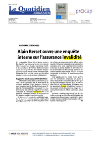 Datum: 23.12.2019 Le Quotidien Jurassien 2800 Delémont 032/ 421 18 18 https://www.lqj.ch/ Medienart: Print Medientyp: Tages- und Wochenpresse Auflage: 17'246 Erscheinungsweise: 6x wöchentlich …   /fileadmin/files/procap/Angebote/Beratung_Information/Politik/Downloads/Sozialversicherungen/Invalidenversicherung/Pressespiegel_Franzoesisch/20191223_Le_Quotidien_Jurassien_Aain_Berset_ouvre_une_enquete_interne.pdf