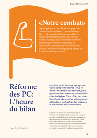xxxxxx  Dossier Réforme desxxxx PC «Notre combat» Depuis presque 90 ans, Procap s’engage dans l’intérêt de ses membres, à travers l’échange direct et le conseil individuel, en politique et jusque…   /fileadmin/files/procap/Angebote/Beratung_Information/Politik/Downloads/Sozialversicherungen/Ergaenzungsleistungen/Francais/2019_Magazine_2_Dossier_Reforme_des_PC.pdf