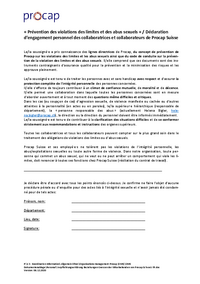 « Prévention des violations des limites et des abus sexuels » / Déclaration d’engagement personnel des collaboratrices et collaborateurs de Procap Suisse Le/la soussigné·e a pris connaissance des…   /fileadmin/files/procap/ueber_uns/Dokumente/Praevention/Francais/20220617_Declaration_d_engagement_personnel_FR.pdf
