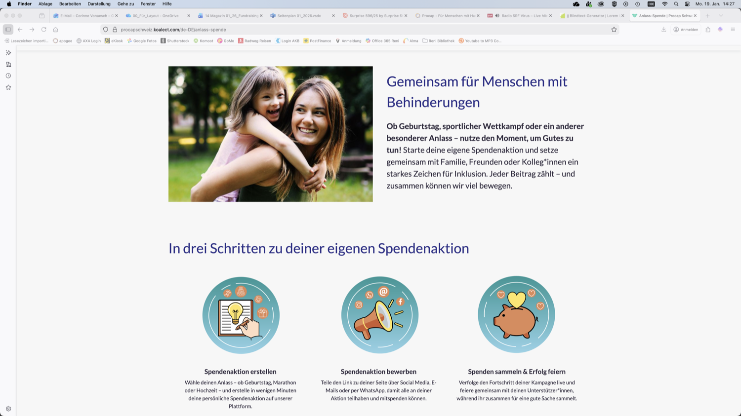 Aufbauend auf den Erkenntnissen dieses Crowdfundings, hat Procap auf der Plattform Koalect.com nun eine neue Fundraisingseite lanciert. Auf dieser können auch Gruppen, Vereine und Einzelpersonen unkompliziert eine eigene Spendenaktion zugunsten von Menschen mit Behinderungen starten. Procap sagt von Herzen Danke für jeden gespendeten Beitrag.