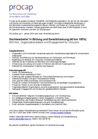 Procap ist die grösste Schweizer Selbsthilfe- und Mitgliederorganisation, die sich für die Interessen und Rechte von Menschen mit Behinderungen einsetzt. Sie bietet professionelle Beratungen in den…   /fileadmin/files/procap/ueber_uns/Dokumente/Jobs/20251110_Sachbearbeiter_in_Bildung_Sensibilisierung.pdf