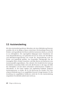 …3.3 Assistenzbeitrag Mit dem Assistenzbeitrag können Menschen mit einer Behinderung Personen anstellen, die sie im Alltag zu Hause unterstützen. Die berechtigte Person (bei Kindern und Jugendlichen die Eltern) stellt…   /fileadmin/files/procap/Publikationen/Dokumente/Items/Was_steht_meinem_Kind_zu/20220428_Auszug_Assistenzbeitrag_22_6te_Auflage.pdf