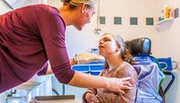 Eine Mutter pflegt ihre Tochter im Rollstuhl.