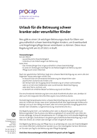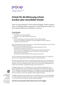 Für Menschen mit Handicap. Ohne Wenn und Aber. Urlaub für die Betreuung schwer kranker oder verunfallter Kinder Neu gibt es einen 14-wöchigen Betreuungsurlaub für Eltern von gesundheitlich schwer…   /fileadmin/files/procap/Publikationen/Dokumente/Items/Betreuungsurlaub/20210623_Merkblatt_Betreuungsurlaub_Juni_21_A4.pdf