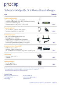 Technische Mietgeräte für inklusive Veranstaltungen Gerät Mietpreis* Audiodeskriptionsanlage >> Sennheiser Hightech-Sender (SR 2020 D) >> Sennheiser Vorverstärker (Dual Micro Preamplifier…   /fileadmin/files/procap/Publikationen/Dokumente/Downloadseite/Bildung_und_Sensibilisierung/20211019_Preisliste_Mietgeraete_DE.pdf