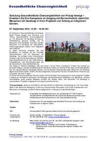 Gesundheitliche Chancengleichheit Schulung Gesundheitliche Chancengleichheit von Procap bewegt – Erweitern Sie Ihre Kompetenz im Umgang mit Barrierefreiheit, damit Sie Menschen mit Handicap in Ihren…   /fileadmin/files/procap/Angebote/Weiterbildungen_und_Kurse/Downloads/Bildungs-_und_Fachbereich/20210907_Programm_Schulung_gesundheitliche_Chancengleichheit.pdf