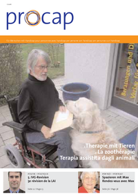 … Schweiz. Mit dem Assistenzbudget, das in diesem Jahr in einem IV-Pilotversuch mit 400 Teilnehmenden getestet wird, können Behinderte selbst gewählte AssistentInnen anstellen. pd procap 1/2006 EN BREF A noter…   /fileadmin/files/procap/Publikationen/Dokumente/Magazin/2006/20061_DFI_Therapie_mit_Tieren.pdf