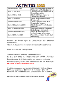 Samedi 18 mars 2023 Dès14h30 Assemblée générale au Restaurant du Mont de Coeuve Dès 18h30 Pizza au Restaurant le Cheval Blanc à Alle Dès 11h30 Pique-nique à la Cabane de Chevenez Repas rencontre au…   /fileadmin/files/procap/ueber_uns/Dokumente/Sektionen/Francais/20230302_Ajoie_Programme_des_activites_2023.pdf