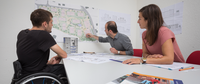 Zwei Bauberater:Innen bei der Arbeit