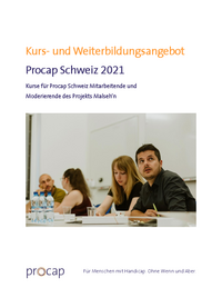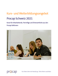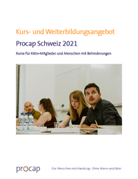 Kurs- und Weiterbildungsangebot Procap Schweiz 2021 Kurse für Mitarbeitende, Freiwillige und Ehrenamtliche aus den Procap-Sektionen Für Menschen mit Handicap. Ohne Wenn und Aber. Seite 2 1…   /fileadmin/files/procap/Angebote/Weiterbildungen_und_Kurse/Downloads/Kursprogramme/2021/20210819_Bildungsprogramm_2021_Sektionen.pdf