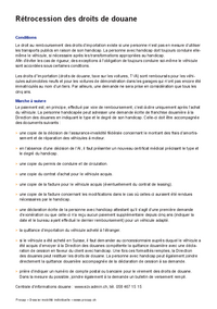 Rétrocession des droits de douane Conditions Le droit au remboursement des droits d’importation existe si une personne n’est pas en mesure d’utiliser les transports publics en raison de son handicap.…   /fileadmin/files/procap/Angebote/Beratung_Information/Mobilitaet/Downloads/Francais/20210526_trocession_des_droits_de_douane.pdf