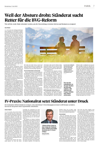 Politik Donnerstag, 2. Juni 2022 7 Weil der Absturz droht: Ständerat sucht Retter für die BVG-Reform Wie soll die zweite Säule reformiert werden, um die Umverteilung zwischen Aktiven und…   /fileadmin/files/procap/Angebote/Beratung_Information/Politik/Downloads/Pressespiegel/20220602_SN_unter_Druck.pdf