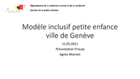 Modèle inclusif petite enfance ville de Genève 11.05.2021 Présentation Procap Agnès Monnet Département de la cohésion sociale et de la solidarité Service de la petite enfance Canton LSAPE J6…   /fileadmin/files/procap/Angebote/Beratung_Information/Politik/Downloads/KITA/20210911_Modele_ville_de_Geneve.pdf