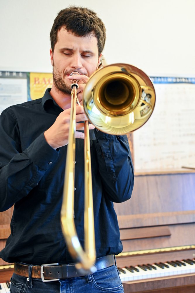 Hier habe ich alles, was ich für die Integration im Arbeitsmarkt brauche. Ich finde an meinen Arbeitstagen gut eingerichtete Unterrichtszimmer vor und kann darin sicher, vielfältig und kreativ arbeiten. Ich unterrichte Alphorn und Posaune und habe verschiedene Improvisationskurse. Gleichzeitig leite ich als Co-Lehrperson zwei Jazz-Workshops. Teamwork und der Austausch im Kollegium sind mir sehr wichtig. Die Zusammenarbeit ist sehr wertschätzend und lösungsorientiert.